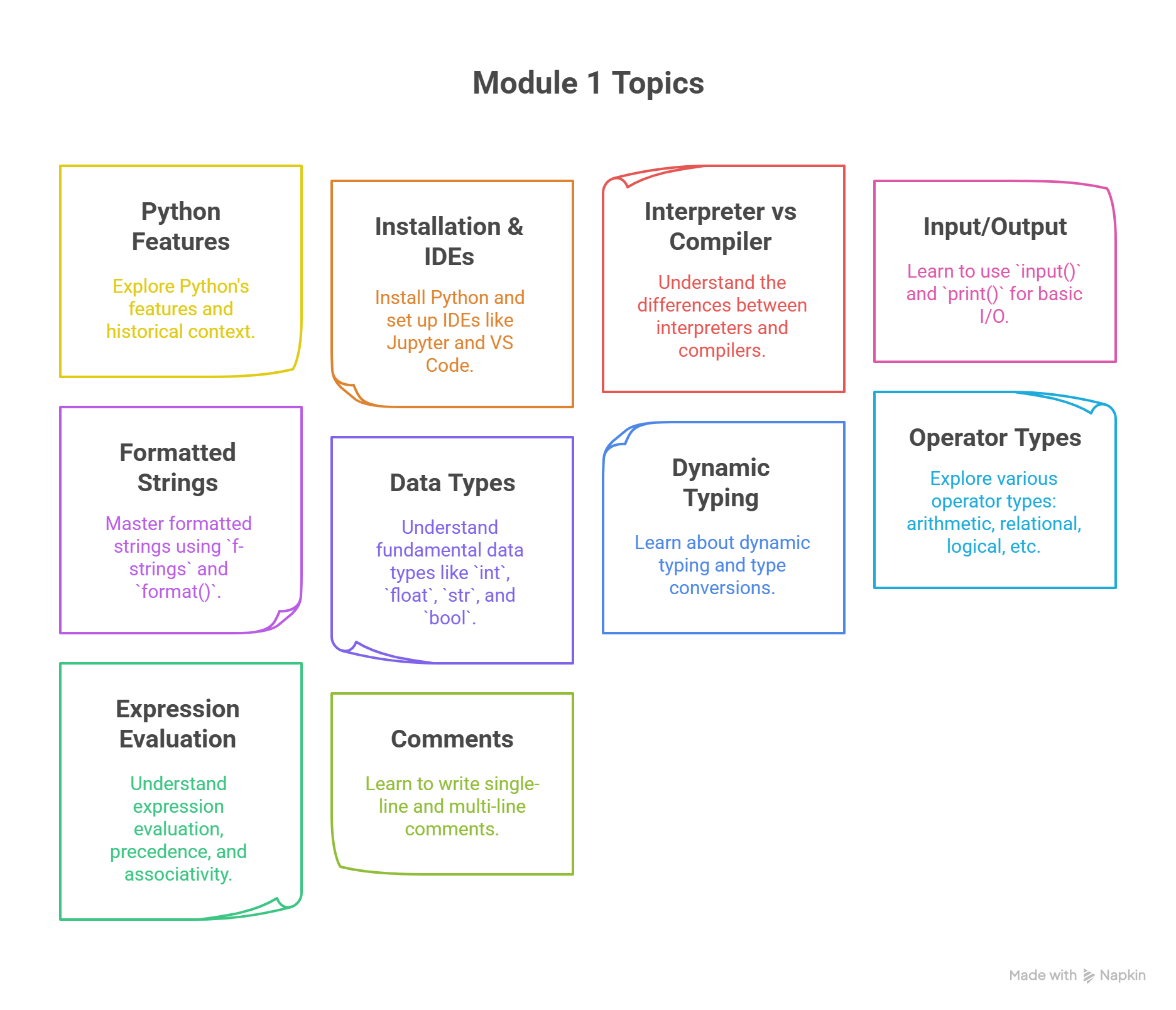 Module 1: Introduction to Python, Input/Output and Operators (7 Periods)